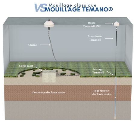 Temano® progetta e produce sistemi di ormeggio completi in Bretagna, progettati per proteggere il fondale marino garantendo affidabilità e durata.